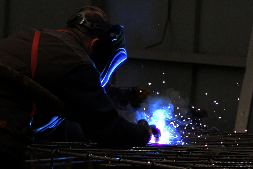 Sur nos deux sites de production, nos compagnons œuvrent à vos projets avec minutie : découpe, pliage, façonnage et assemblage des armatures, qualité de soudure.